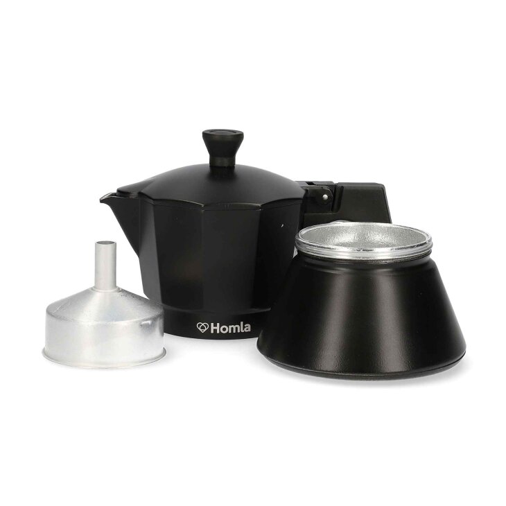 Klasična crna boja proizvoda u kombinaciji s tradicionalnim uglatim oblikom aparata za kavu stvara prekrasnu i elegantnu cjelinu. Oblikovana plastična ručka osigurava udobnu upotrebu. Kapacitet aparata za kavu omogućit će vam da skuhate dovoljno kave za tri šalice.