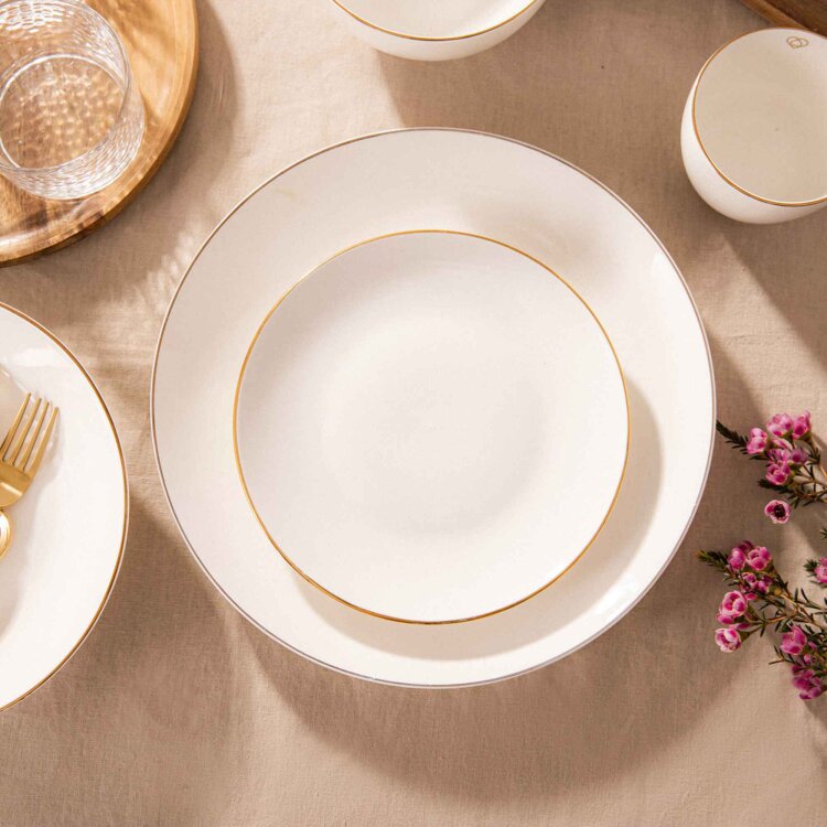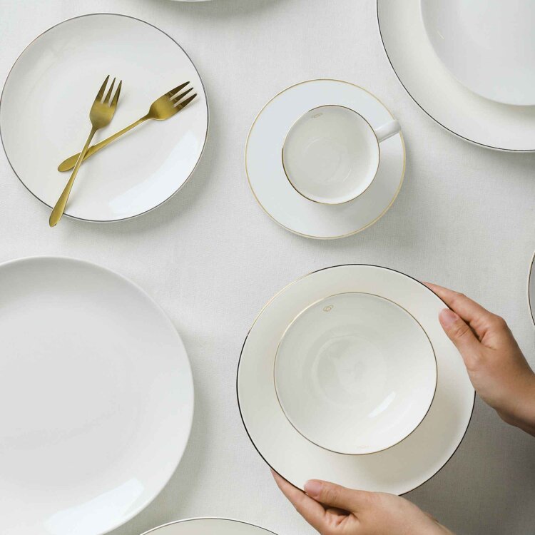 Serija posuđa AURO ukrast će srca svih minimalista koji traže post-nadrealnu eleganciju. Njegovi jednostavni komadi u krem ??i krem ??boji bit će savršena baza za eksperimentiranje - omogućujući vam da promijenite cjelokupni dekor blagovaonice dodacima, a da ostanete u pozadini. Desertni tanjur AURO sa zlatnim okvirom dobro će pristajati uz bilo koje posuđe, ali će izgledati najskladnije s ostalim posuđem u seriji.