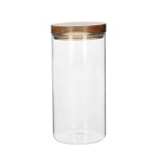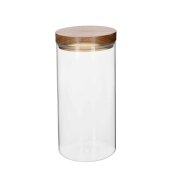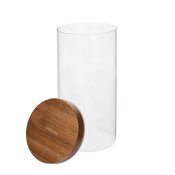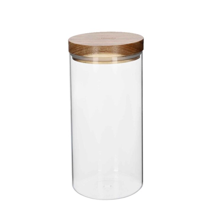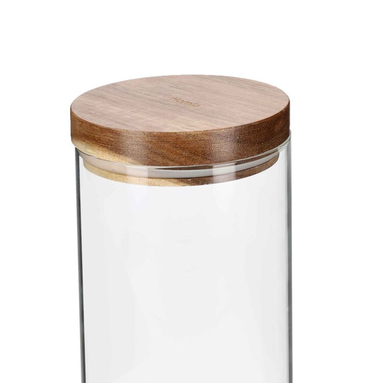 Spremnici su napravljeni od prozirnog stakla, tako da se lako čiste i bez skidanja poklopca možete procijeniti količinu proizvoda unutra. Poklopci su izrađeni od prirodnog bagremovog drva koje je otporno na ogrebotine i ističe se svojom nepravilnom bojom.