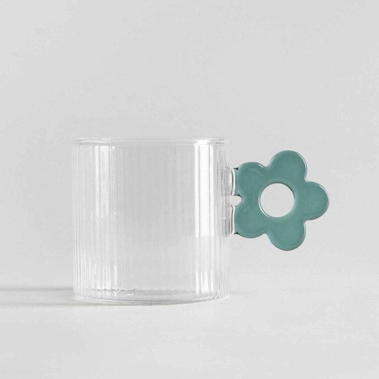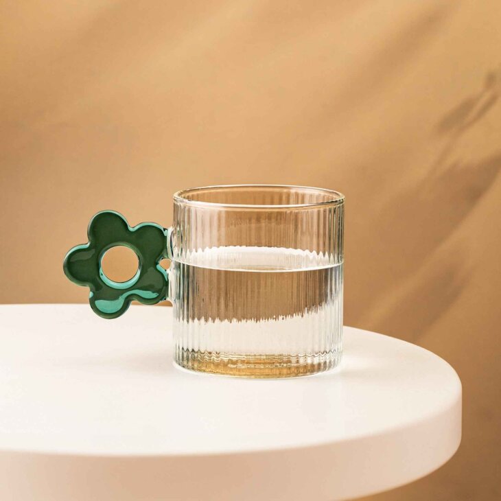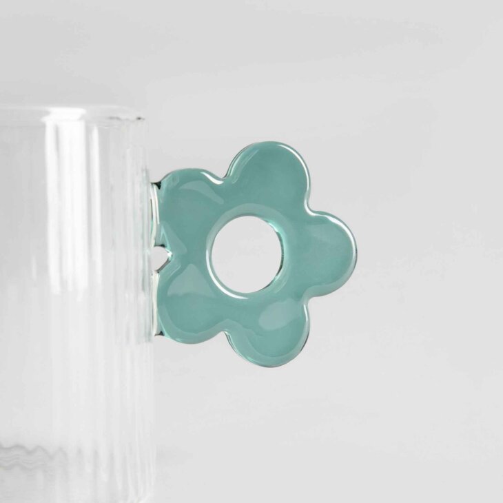 Dodajte dašak radosti svojim svakodnevnim trenucima! Čaša BELLEZZA kombinira suptilnost rebrastog stakla sa šarmantnom tirkiznom ručkom u obliku cvijeta. Njegov lagani, ali elegantni oblik čini svako piće posebnim.