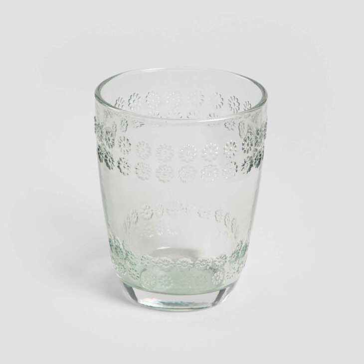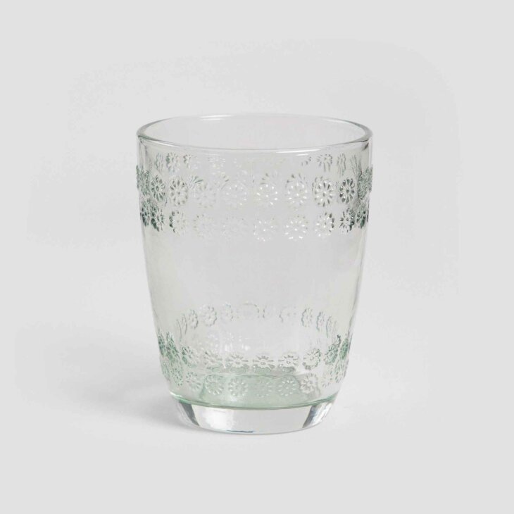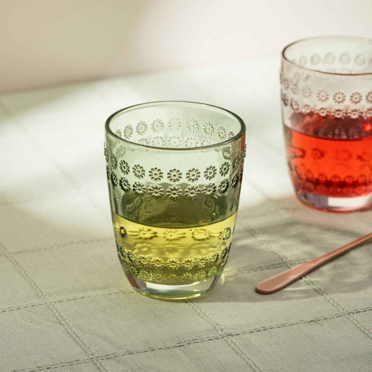 Ova funkcionalna zelena čaša je svestrana posuda za svakodnevno posluživanje vode, sokova ili koktela. Čaša ima prepoznatljiv, elegantan stakleni ukras, zbog čega izgleda lijepo na stolu na zabavi ili čak za svakodnevnu upotrebu.