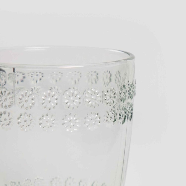 Ova čaša s uzorkom kapaciteta 270 ml je svestrana posuda za piće. Bit će prikladna i za svakodnevne obroke i zabave. Jedinstveni dizajn i boje učinit će staklo istaknutim među postavkama vašeg stola.
