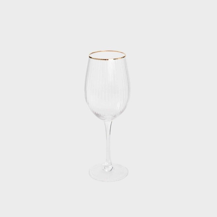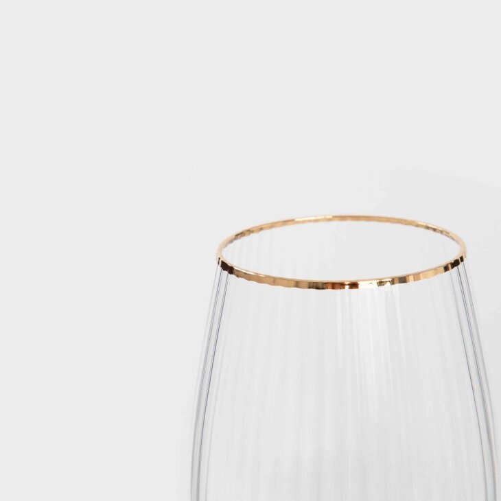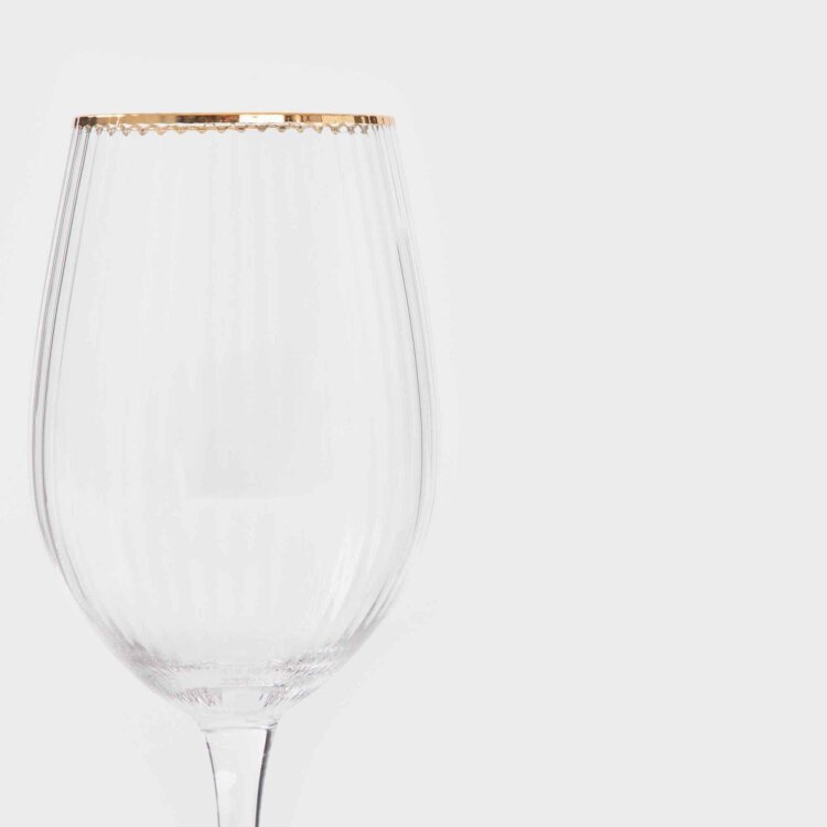 Staklo LYNN impresionira svojim bezvremenskim dizajnom, idealnim za posebne prilike i elegantne sastanke. Zahvaljujući suptilnim žljebovima i rubu koji je ukusno obrađen u zlatu, čaša će naglasiti sofisticiranu estetiku svake postavke stola.