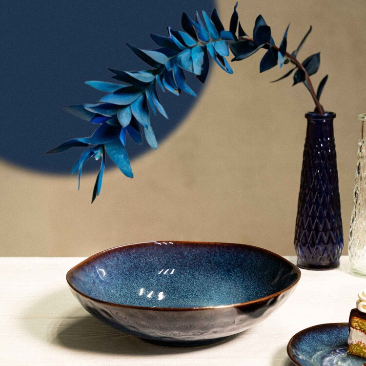 Posuda za posluživanjeHOMLA CASPER omogućit će vam da na elegantan način poslužite hrskave zalogaje i salate tijekom posjeta gostiju ili opuštenog druženja s prijateljima. Posuda je tamnoplave boje koja oduševljava svojom dubinom i savršeno se stapa sa smeđom rubnom linijom. Izvrsno će izgledati na drvenom stolu ili uz elegantan stolnjak.
