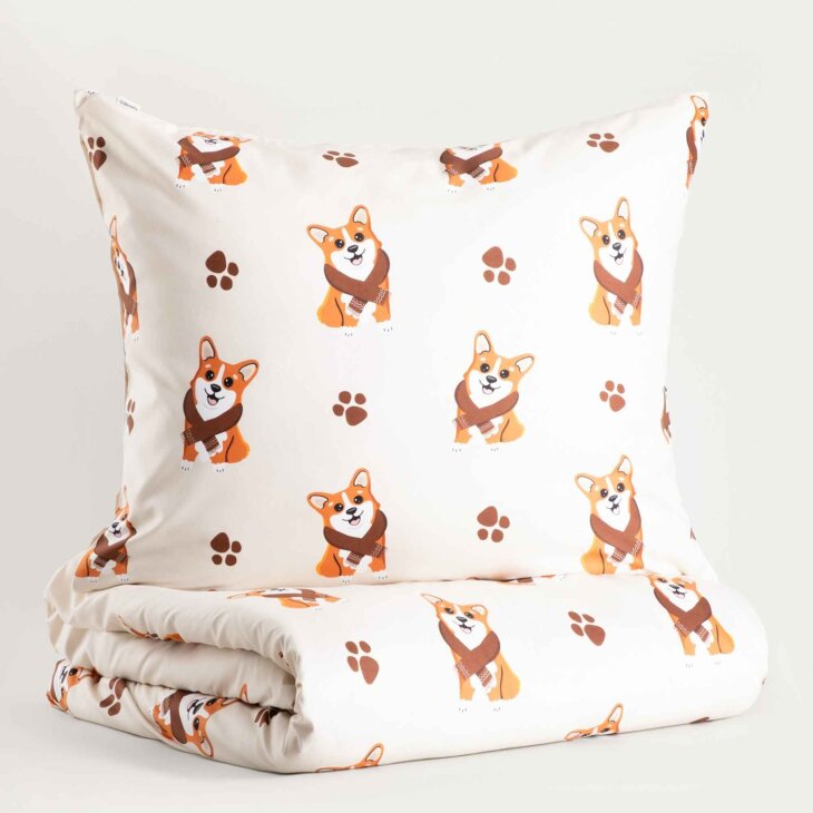 Zahvaljujući svojoj mekanoj i laganoj mikrofibri, CORGI posteljina pruža udobnost i praktičnost tijekom cijele godine. Savršen je za dječju sobu, kao i za mladenačku ili gostinjsku sobu. Šarmantan dizajn savršeno se uklapa u moderne, skandinavske, ali i boho ili eklektične interijere.