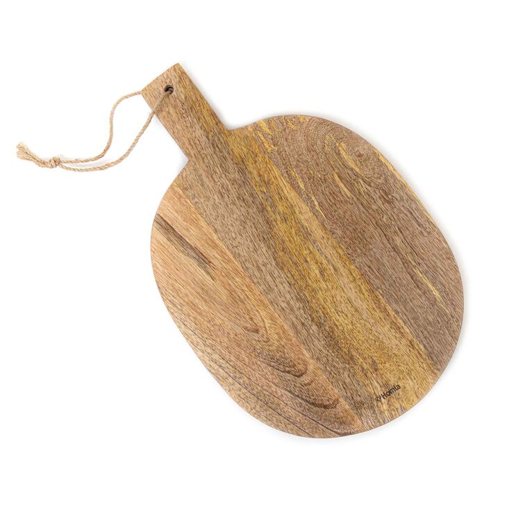 SOSER MANGO ploča je zaobljenog oblika. Proizvod ima praktičnu i estetski dopadljivu ručku, tako da ga možete jednostavno objesiti na kuku kako biste uštedjeli prostor na pultu. To vam također pomaže da udobno nosite ploču. Osim toga, ima dvije izdužene noge koje mu daju veću stabilnost.