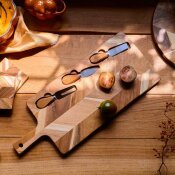 NEVADO daska savršena je za intimna druženja i elegantne zabave. Set sadrži, osim daske s profiliranom ručkom, slijedeći pribor: dlijeto za tvrdi sir, nož za meki i polutvrdi sir, te vilicu.