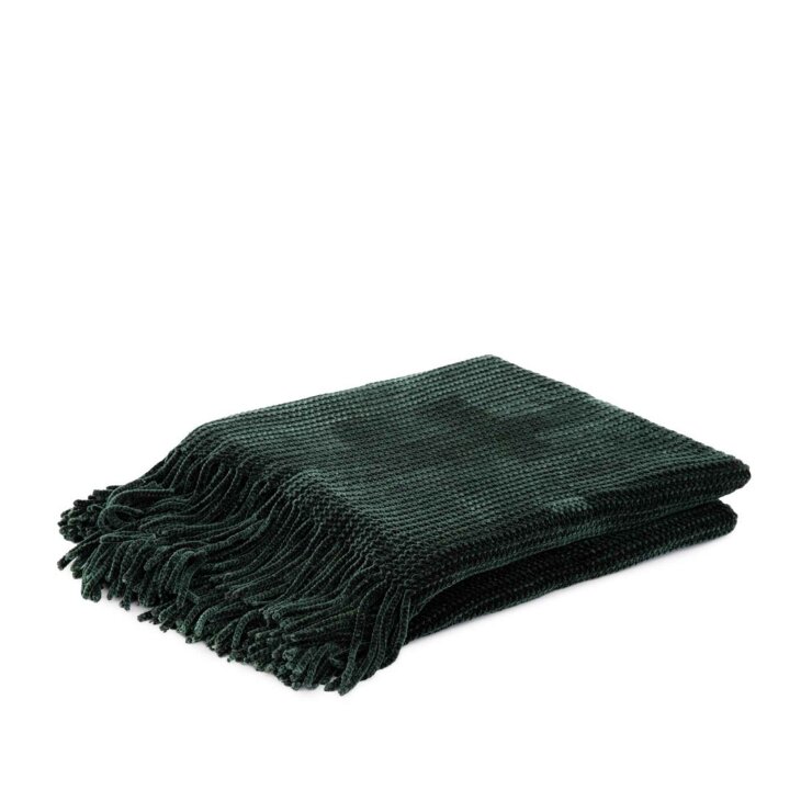 Elegantni CHENILLE pokrivač duboke boje. Elegantna deka od šenila završena je ukrasnim resicama na rubovima. Njegova prekrasna boja savršeno se uklapa u svaki interijer, dodajući mu eleganciju i suptilnost.