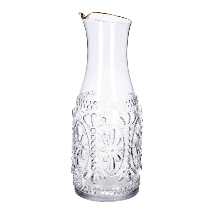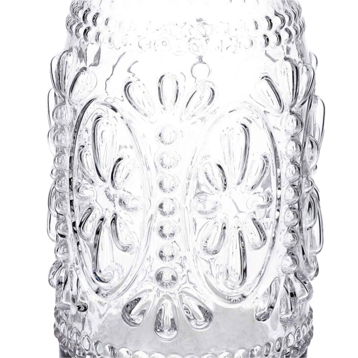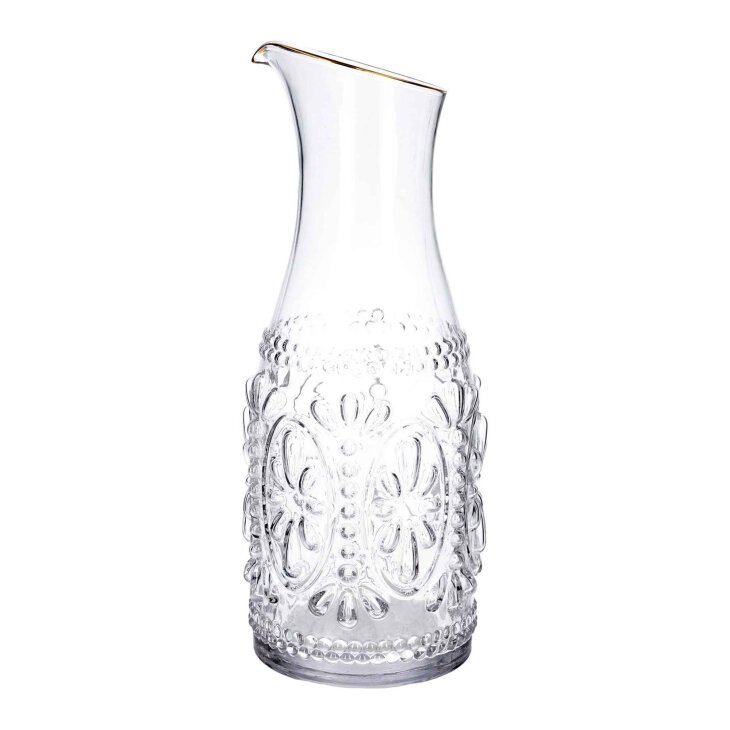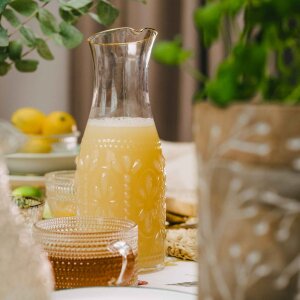 KarakteristikeStakleni bokal kapaciteta 1,2 litre dobro će poslužiti za posluživanje sokova, limunade kao i alkoholnih pića. Bit će savršen dodatak uređenju vaše blagovaonice, a lijepo će izgledati i na ljetnim vrtnim zabavama. Dekanter BARREL ima suptilne oblike s blagim zaobljenjima, suženim gornjim oblikom i širokim grlom za jednostavno točenje. Njegove su stijenke prekrivene ukrasnim reljefima.