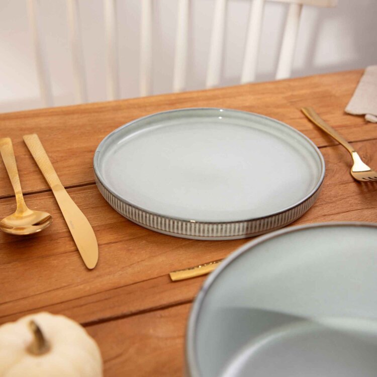 Izrađena od izdržljive kamenine, ploča SANOS odlikuje se suptilnim okomitim utorima koji joj daju elegantan i jedinstven karakter. S promjerom od 21 cm tanjur je idealan za posluživanje slastica, salata i predjela. Savršeno je i za svakodnevnu upotrebu i za elegantne domjenke.