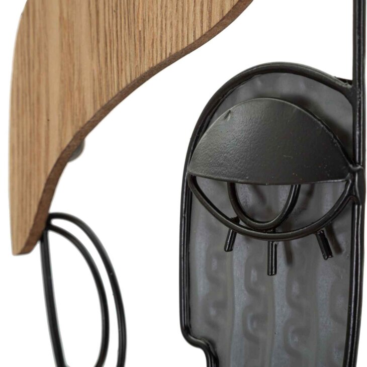 Vješalica u obliku lica od metala i drveta koja podsjeća na kubističku umjetnost.Specifikacije:Nan