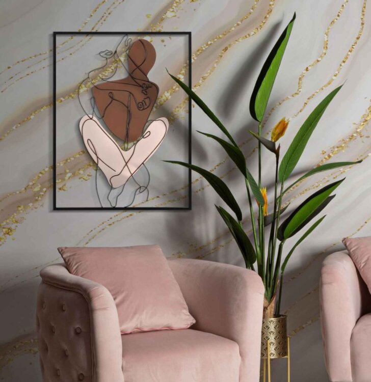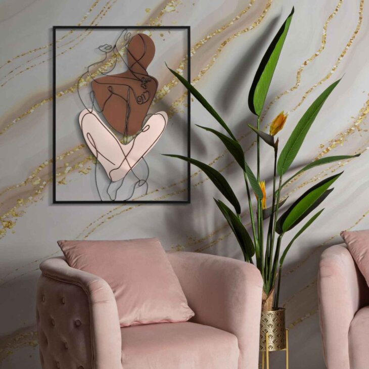 3D ukrasna metalna zidna ploča s mekim linijama koje čine lik para. Ukrašen umetcima u boji...